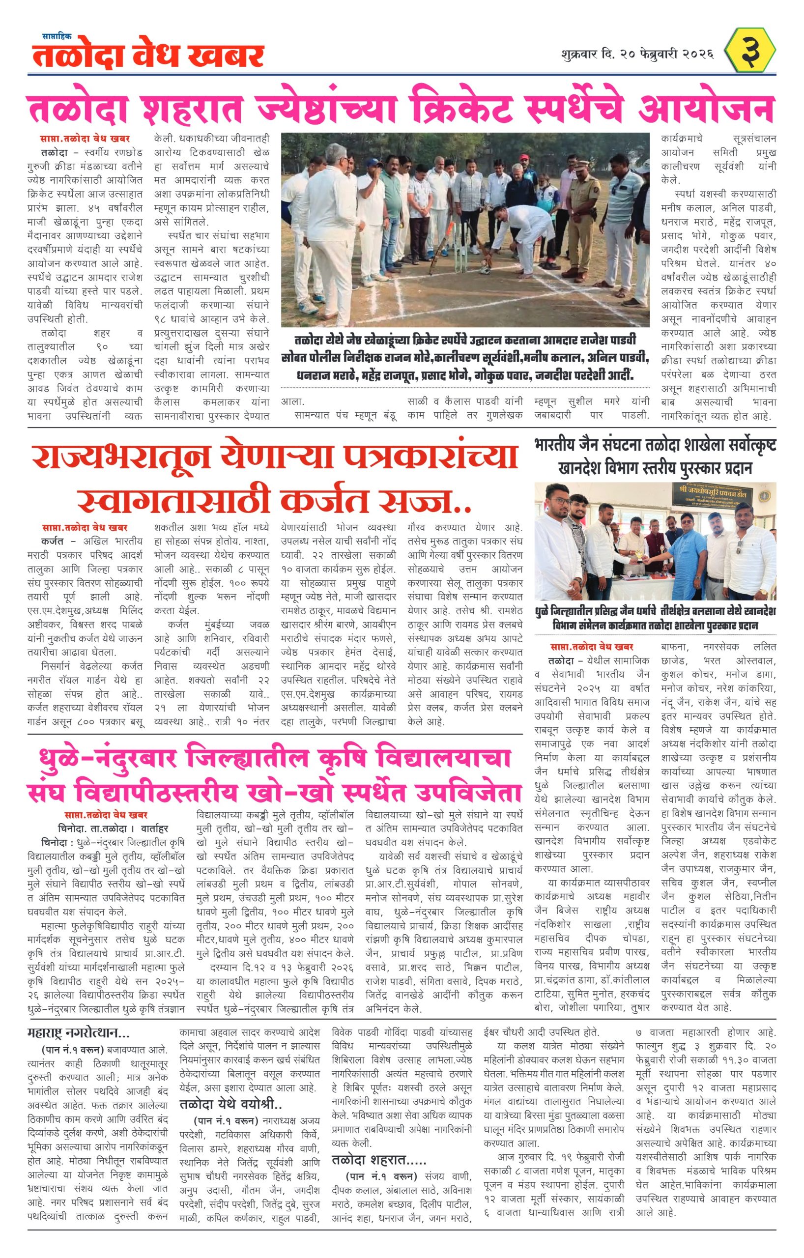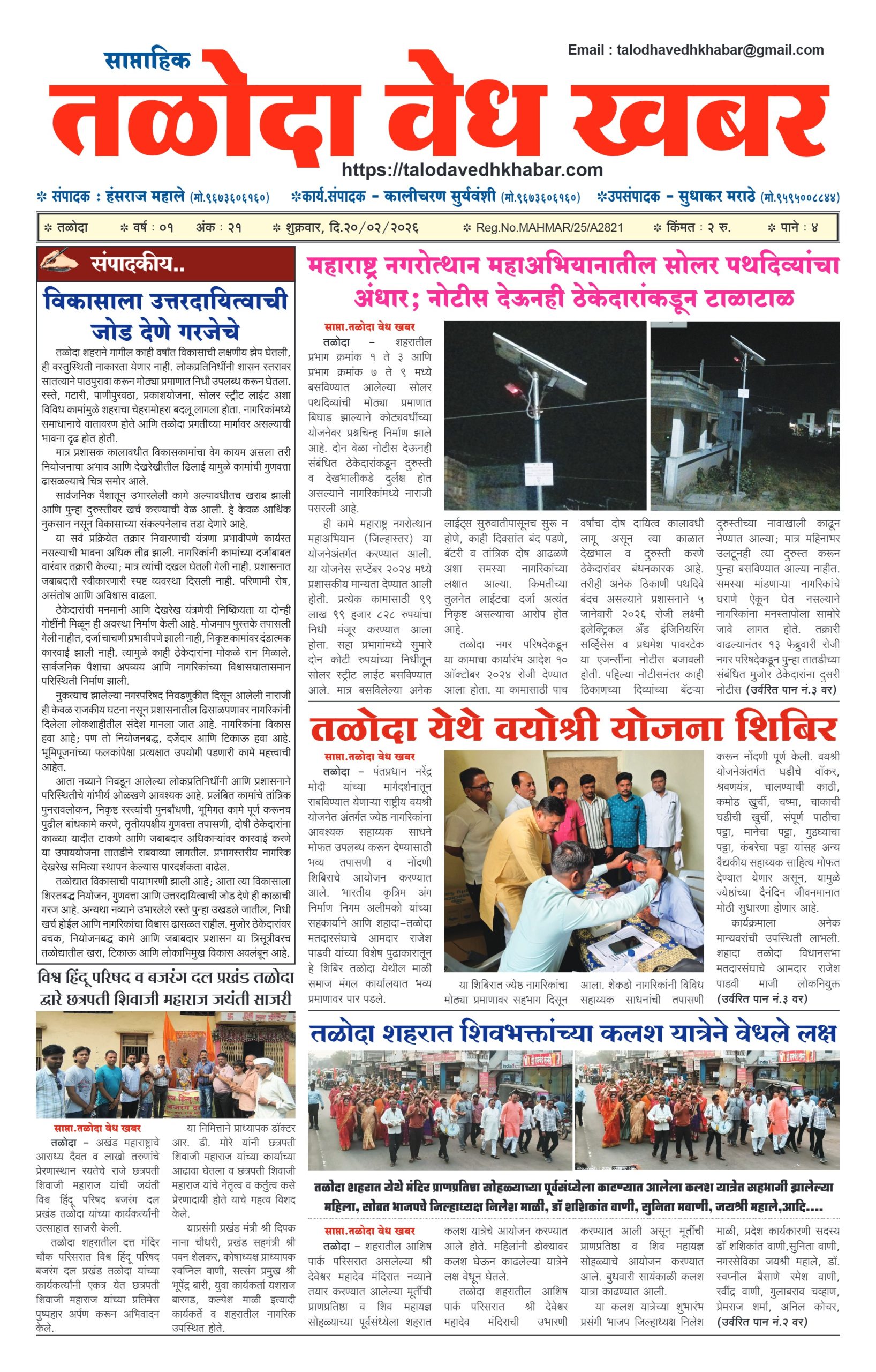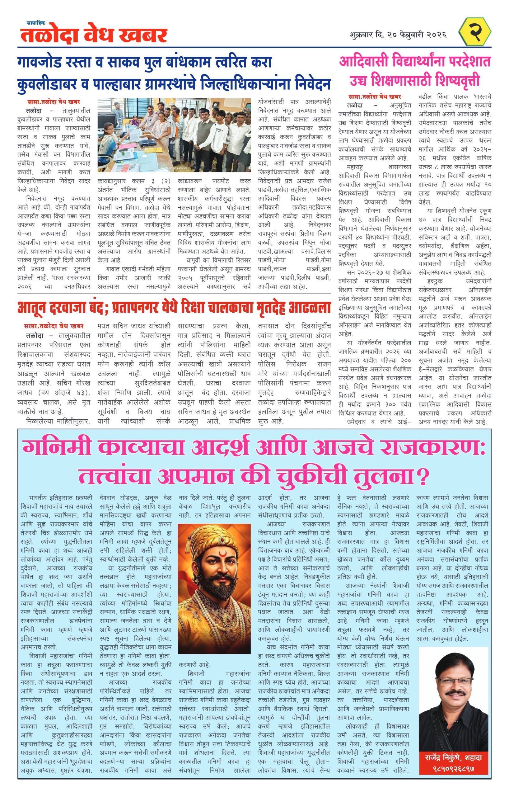 तळोदा वेध खबर – २१ फेब्रुवारी २०२६