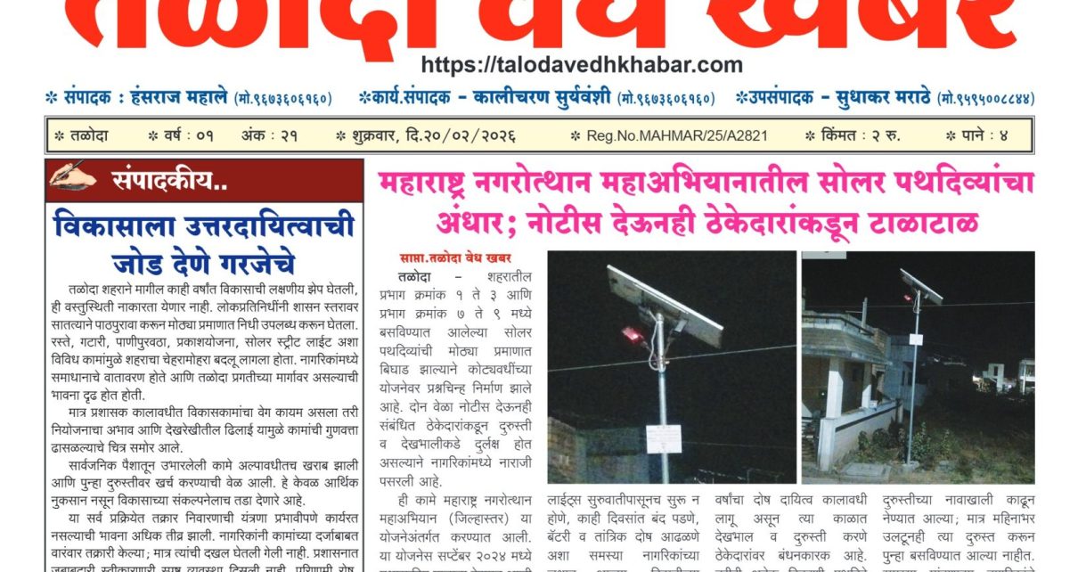 तळोदा वेध खबर – २१ फेब्रुवारी २०२६